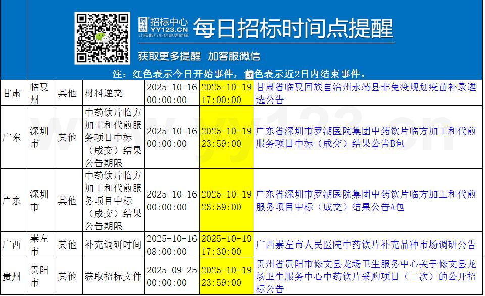 今日政策汇总与招标时间点提醒10月18日-10月20日